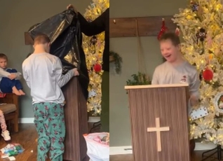 Avô constrói púlpito e surpreende neto com Síndrome de Down