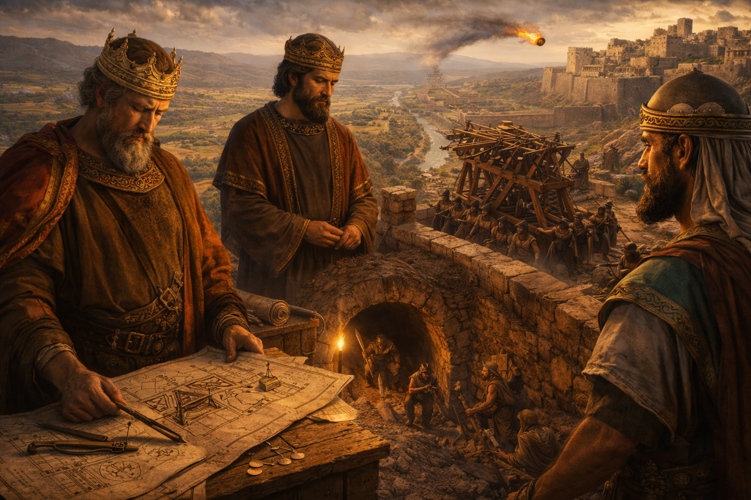 Uzias (2 Crônicas 26): Desenvolveu máquinas de guerra “da invenção de engenheiros”. Implantou sistemas defensivos inéditos. Investiu em agricultura e infraestrutura. Foi estratégia integral.