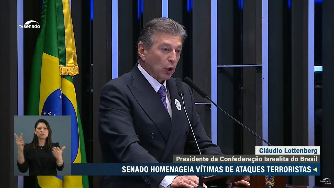 Em discurso na sessão, Claudio Lottenberg, presidente da Conib, criticou o posicionamento do governo Lula sobre a guerra na Faixa de Gaza.