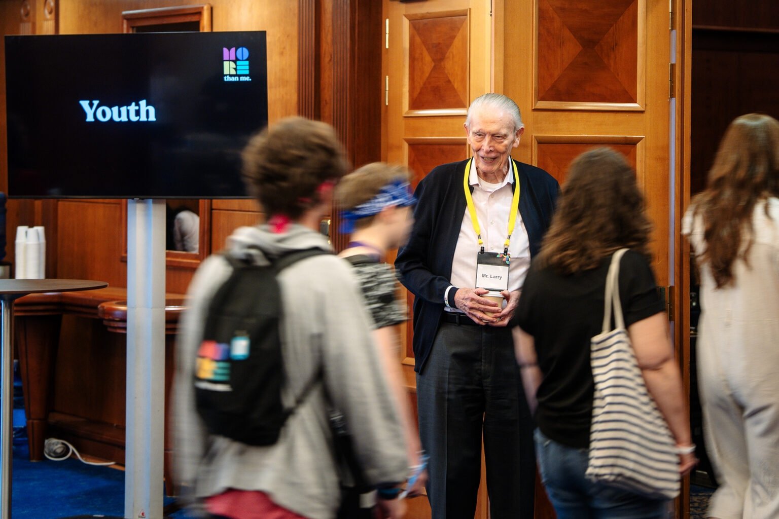 Para os adolescentes que se reúnem em cada evento, o “Sr. Larry” é mais que um voluntário: é amigo, mentor e avô espiritual.