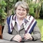 Doaa de 9 anos, sentada em uma cadeira na sala de aula no abrigo da escola na Cidade de Gaza. O desenho mostra um sol brilhante, sorrindo em um céu azul; borboletas, pássaros e árvores; e figuras do lado de fora de uma casa.![]()