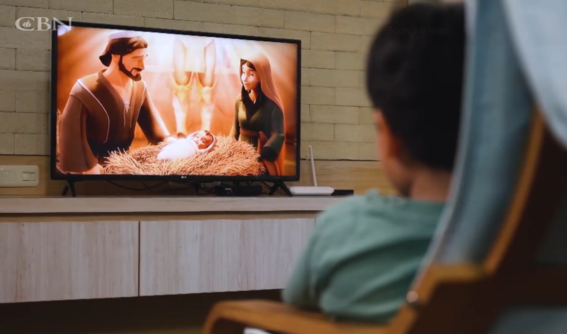 Jhoncent assistiu a um episódio do desenho bíblico Superbook sobre o nascimento de Cristo. (Captura de tela/CBN News)