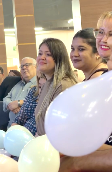 A cerimônia aconteceu poucos dias depois de seu aniversário de 95 anos, celebrado em 21 de abril, e reuniu amigos e familiares que acompanham sua caminhada de fé, entre eles a neta Ariane Storti e seu marido, Silver Gama, que ajudou D. Jandyra a chegar ao batistério.