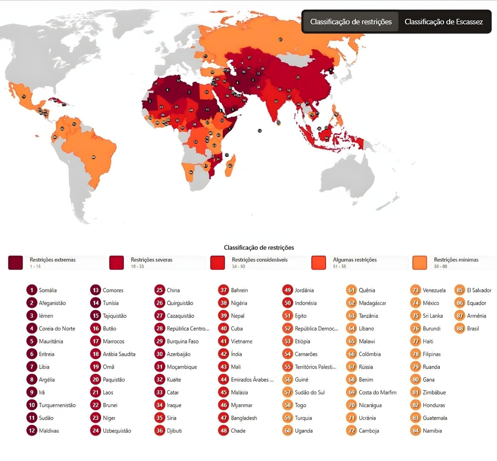 O projeto descobriu que quase 30 nações têm restrições "extremas" ou "severas" ao acesso à Bíblia, impedindo milhões de pessoas de ler a Palavra de Deus.