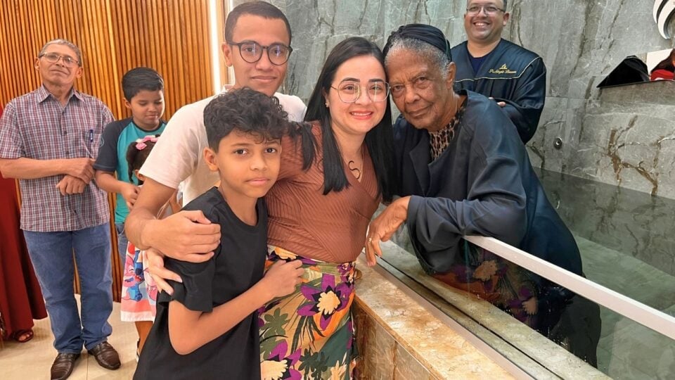 Uma idosa decidiu aceitar Jesus e descer às águas do batismo após sua filha orar durante 40 anos, em Goiás.
