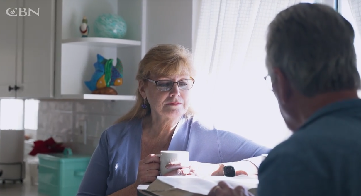 Rebecca e o esposo lendo a Bíblia. (Foto: Reprodução/CBN News)